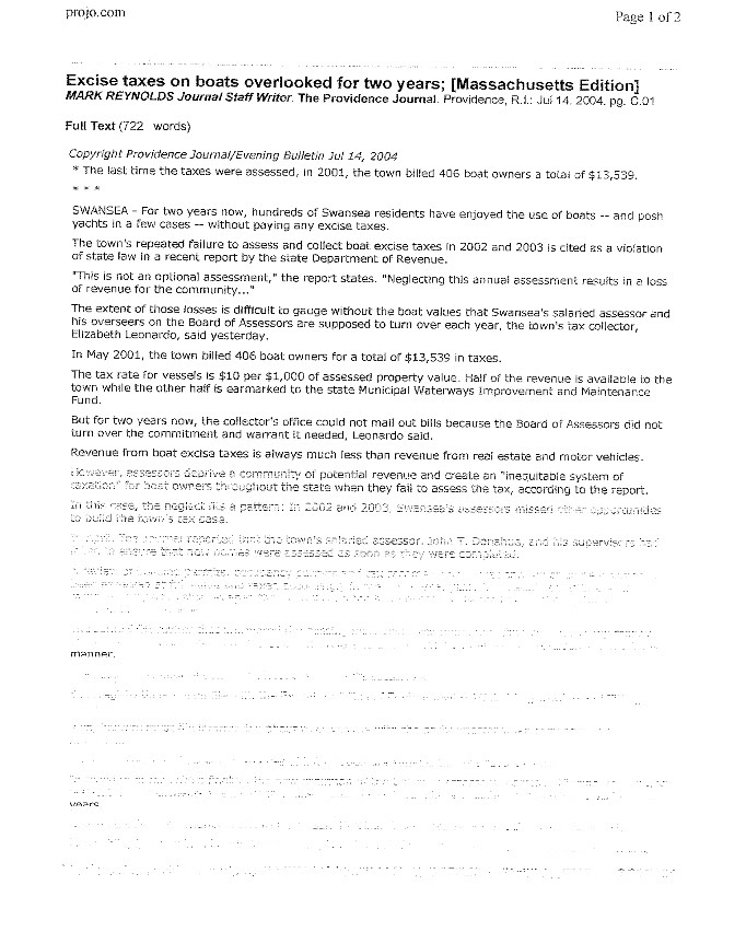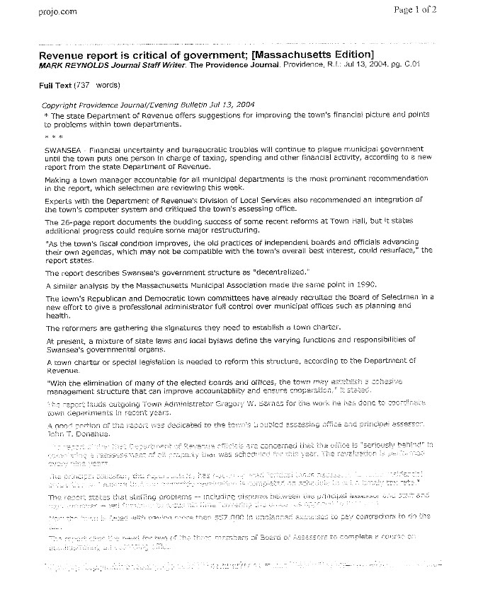 Why didn't she just ask the Providence Journal to look into it? They caught her husband conducting private business on Swansea's time for free: